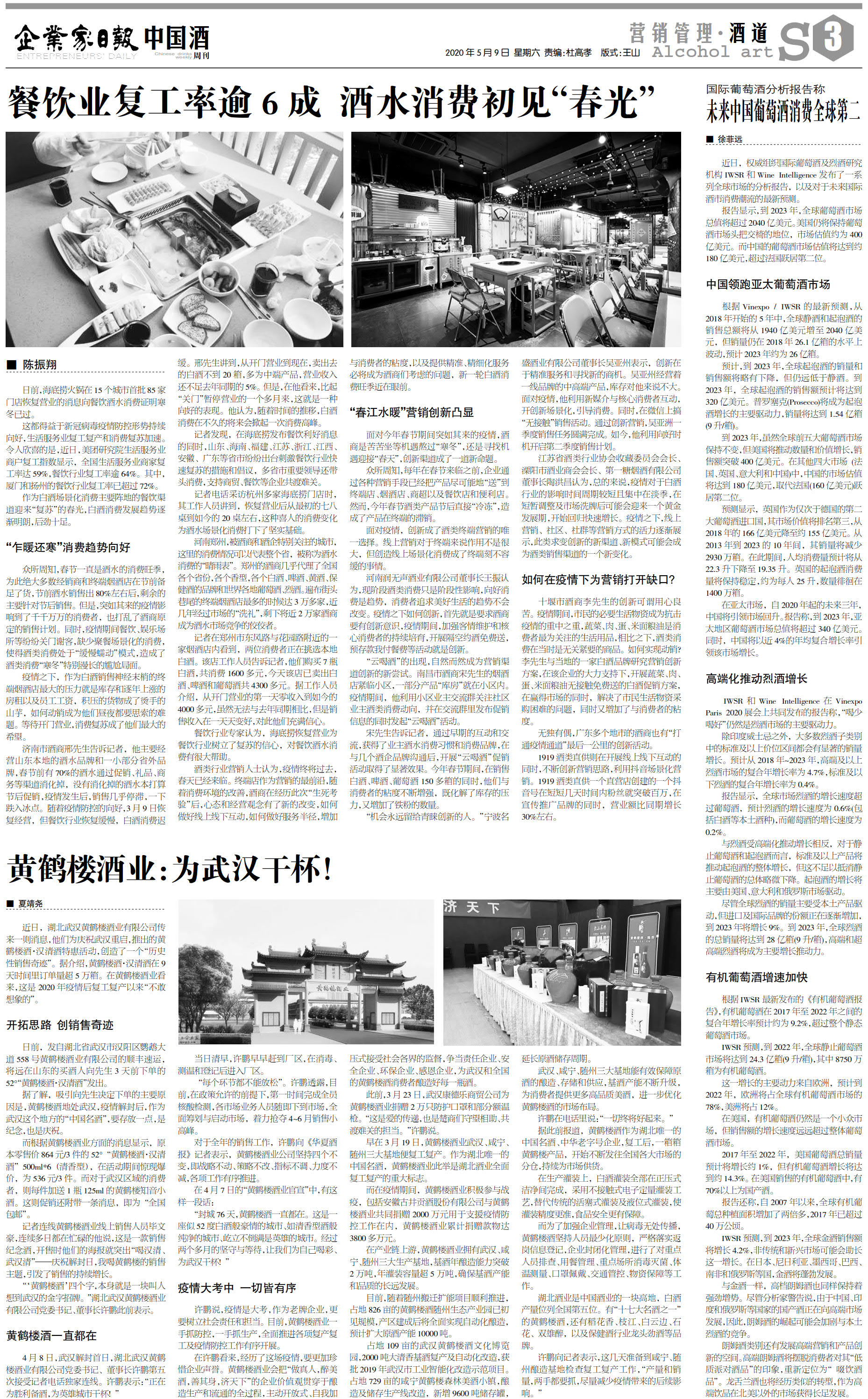 餐饮业复工率逾6成 酒水消费初见“春光”...