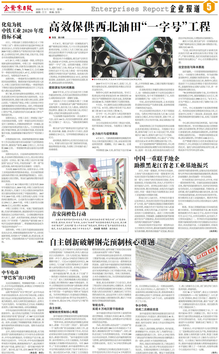 化危为机 中铁工业2020年度指标不减...