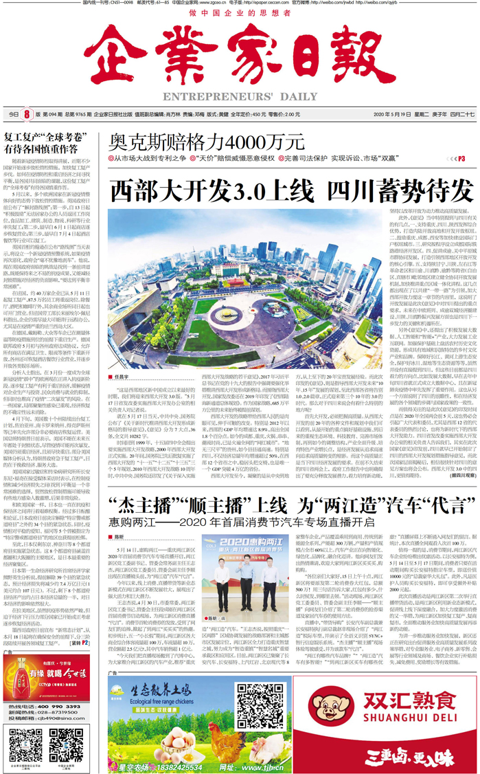 国内统一刊号:CN51—0098 中国•企业家日报