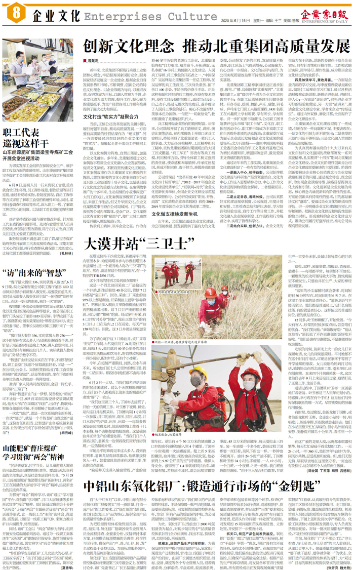 当前,正值公司改革发展的关键时期,履行好强军首责、推动高质量发展,一方面要有高质量的经营结果作为“硬支撑”,另一方面要通过培育良好的企业文化打造“软实力”,凝聚起全体干部员工拼搏向上的力量。