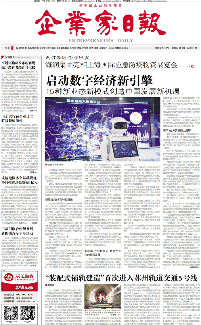 启动数字经济新引擎 15种新业态新模式创造中国...