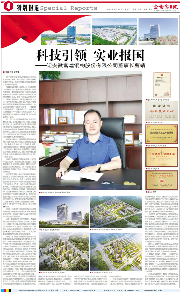 科技引领 实业报国 ——记安徽富煌钢构股份有限...