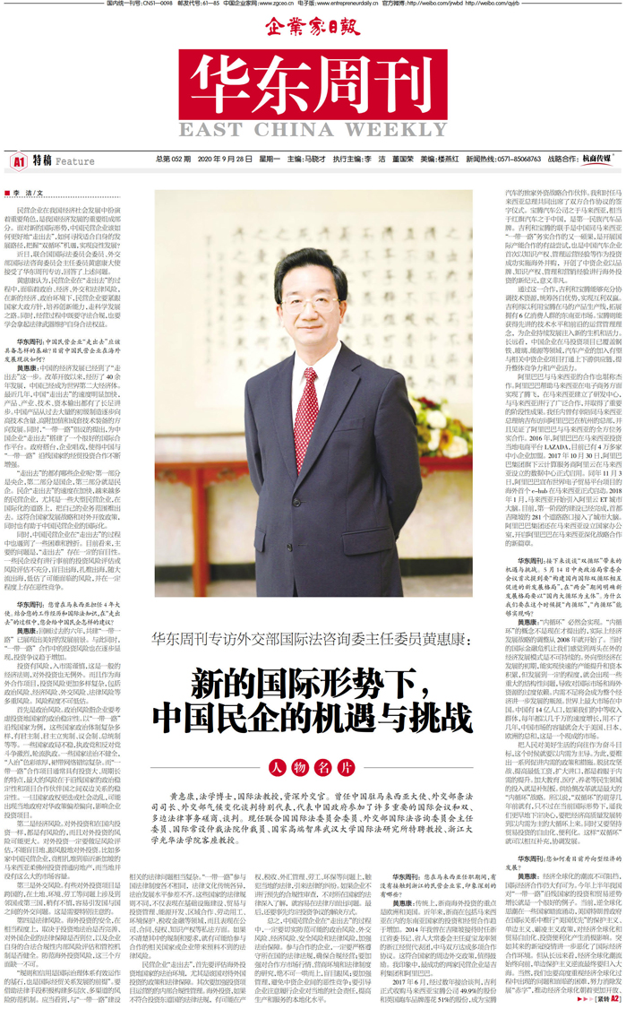 华东周刊专访外交部国际法咨询委主任委员黄惠康...