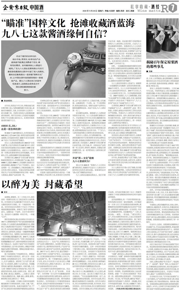 “瞄准”国粹文化 抢滩收藏酒蓝海 九八七这款酱...