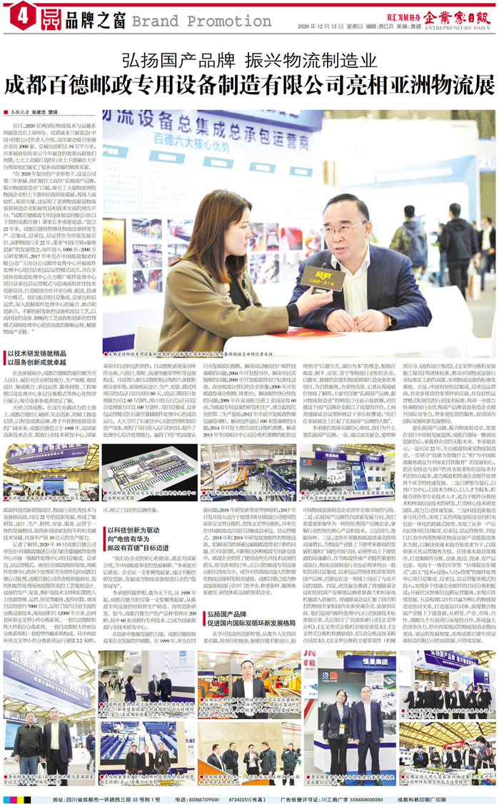 弘扬国产品牌 振兴物流制造业 成都百德邮政专用...
