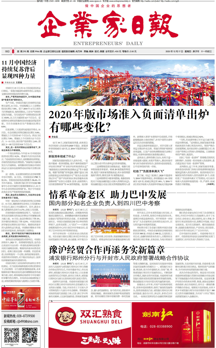国内统一刊号:CN51—0098 中国•企业家日报