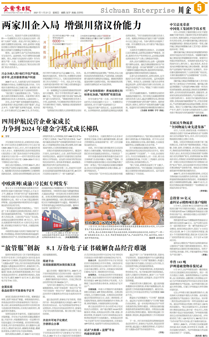 国内统一刊号:CN51—0098 中国•企业家日报