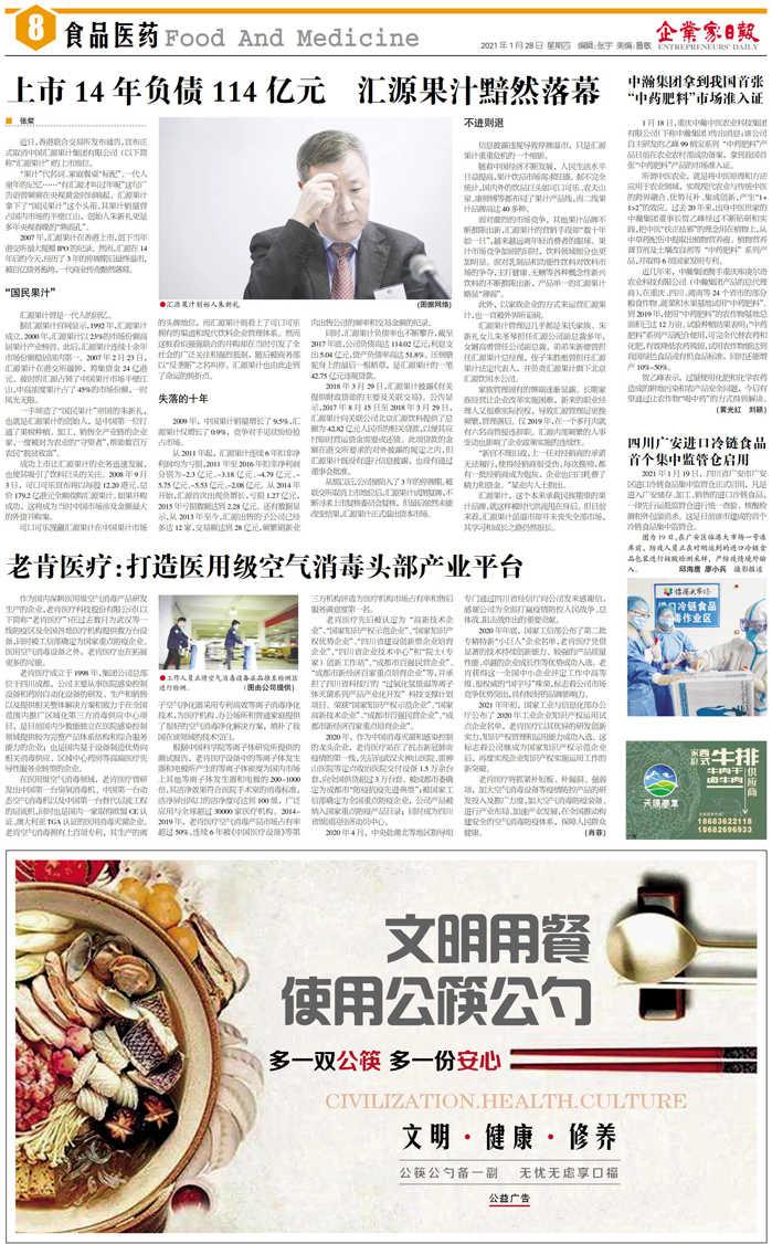 上市14年负债114亿元 汇源果汁黯然落幕...