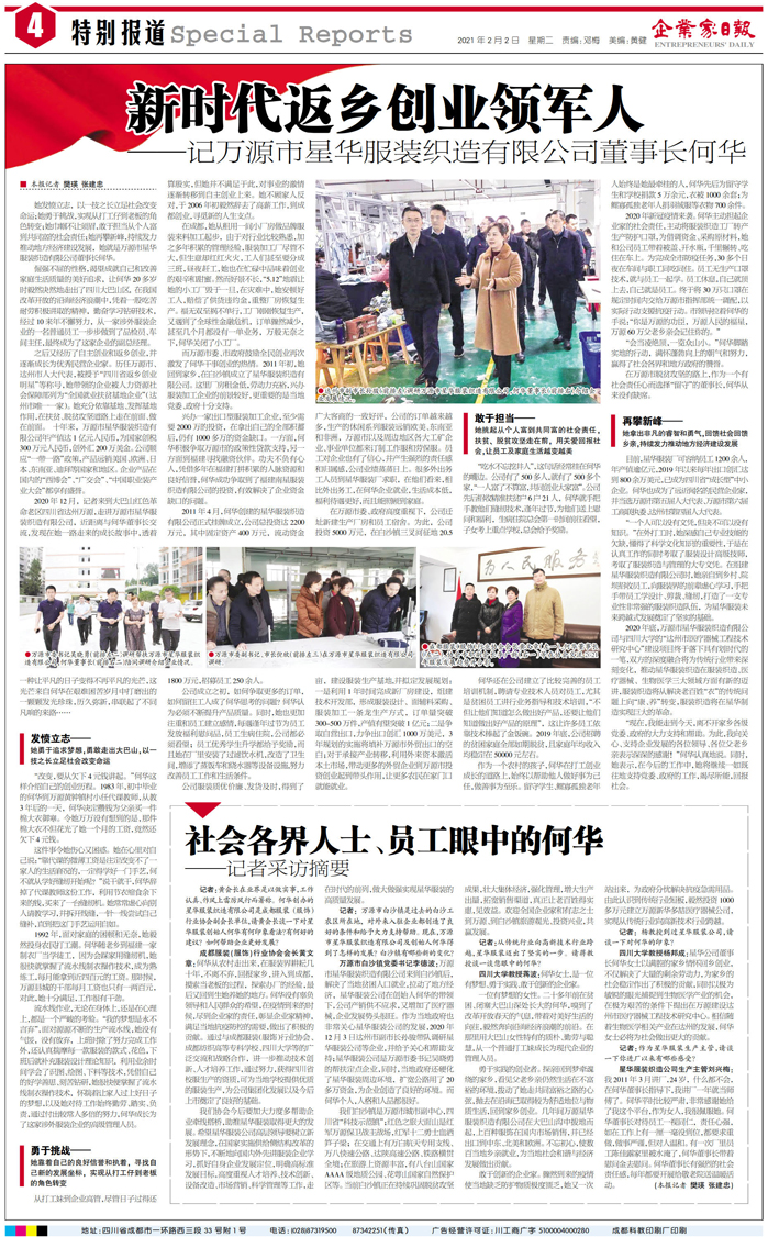 新时代返乡创业领军人 ——记万源市星华服装织...