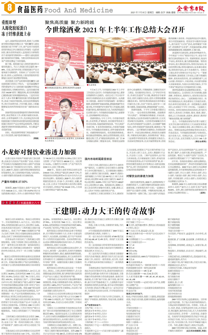 聚焦高质量 聚力新跨越 今世缘酒业2021年上半年...