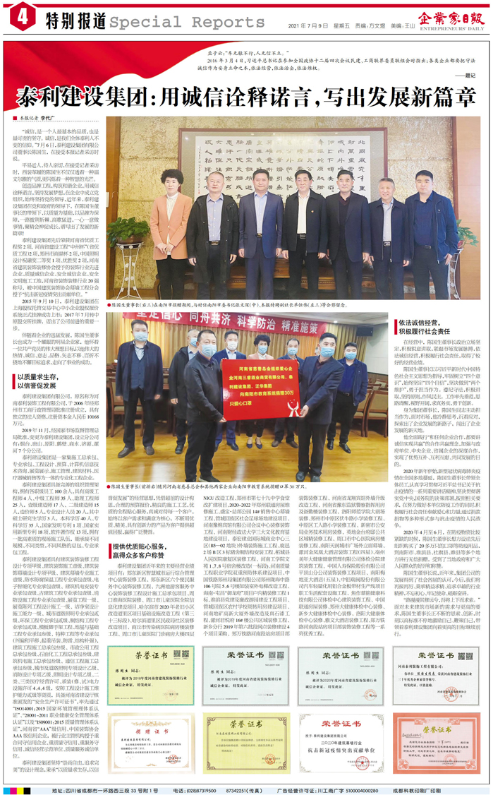 泰利建设集团:用诚信诠释诺言,写出发展新篇章...