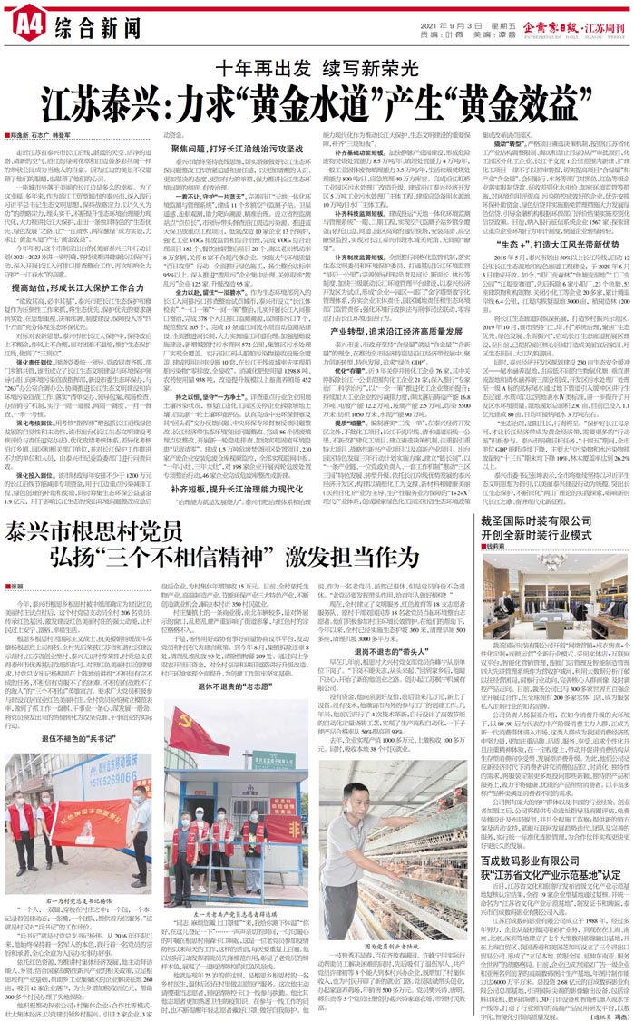 十年再出发 续写新荣光 江苏泰兴:力求“黄金水...