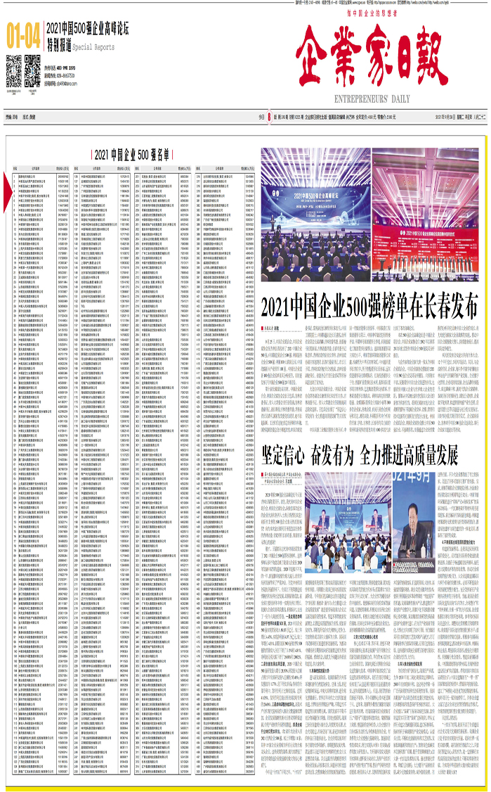 2021中国企业500强榜单在长春发布