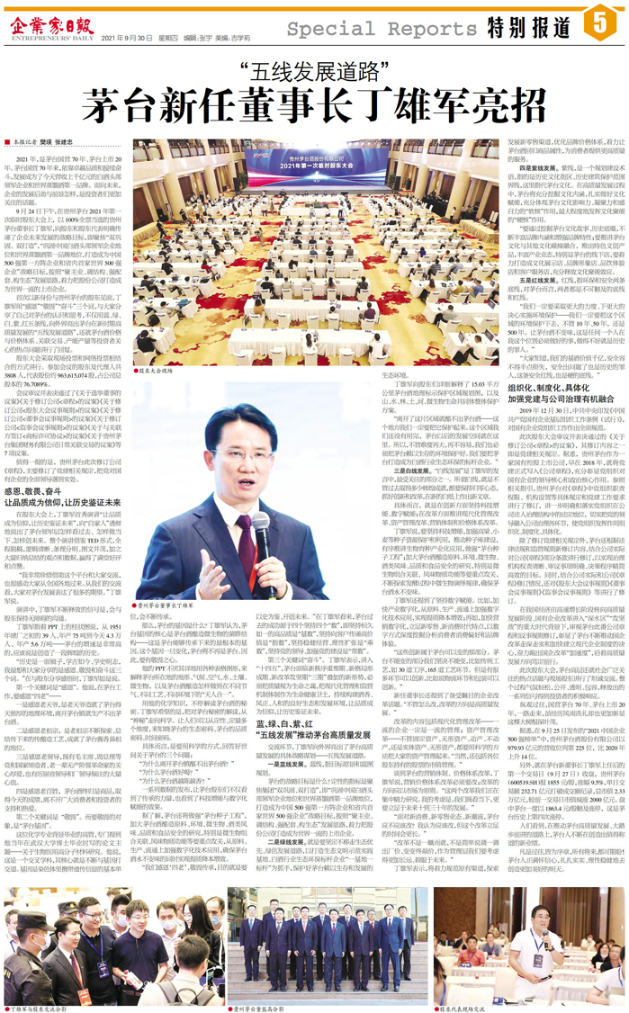 “五线发展道路” 茅台新任董事长丁雄军亮招...