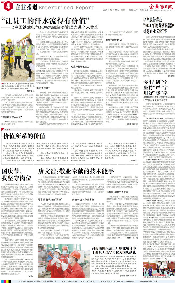 国内统一刊号:CN51—0098 中国•企业家日报