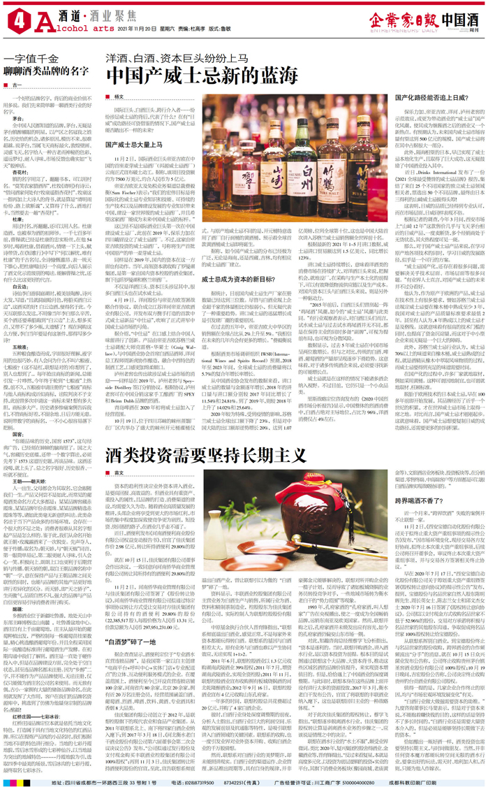 不仅是洋酒巨头、资本巨头涉足其中,很多白酒巨头也在试水威士忌。