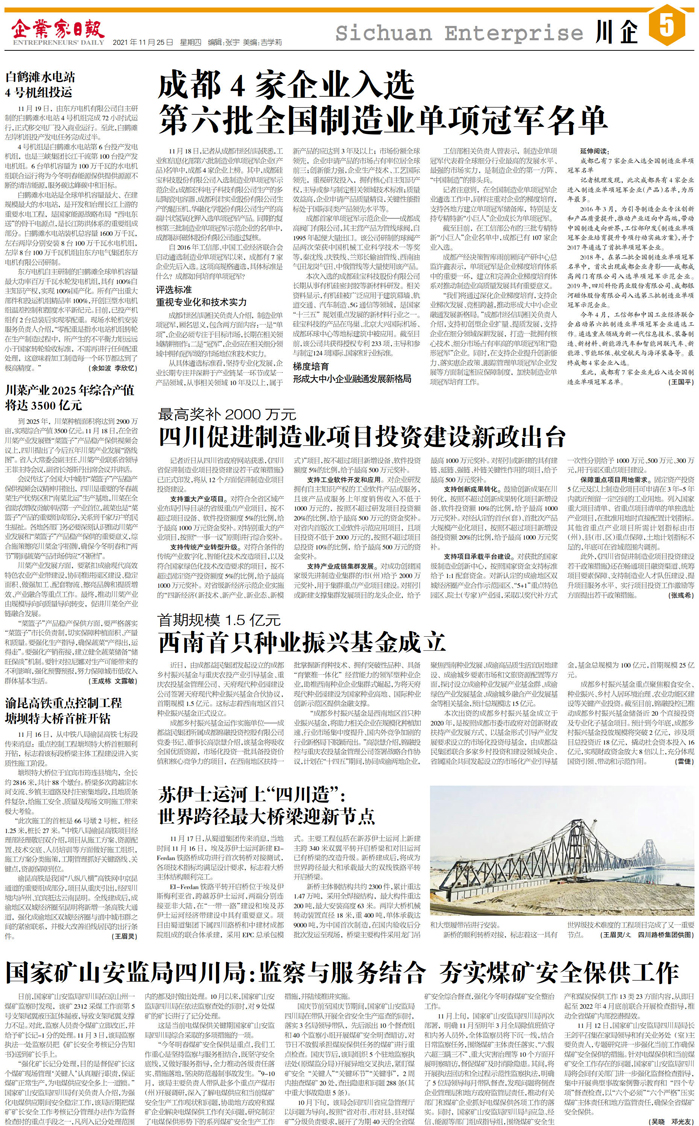 成都4家企业入选 第六批全国制造业单项冠军名单...
