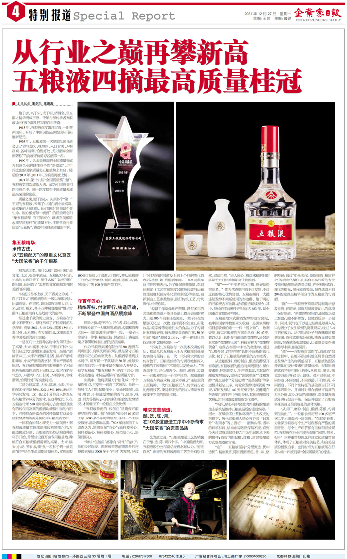从行业之巅再攀新高 五粮液四摘最高质量桂冠...