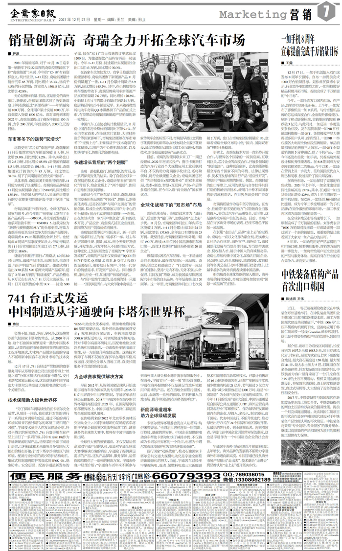 销量创新高 奇瑞全力开拓全球汽车市场...