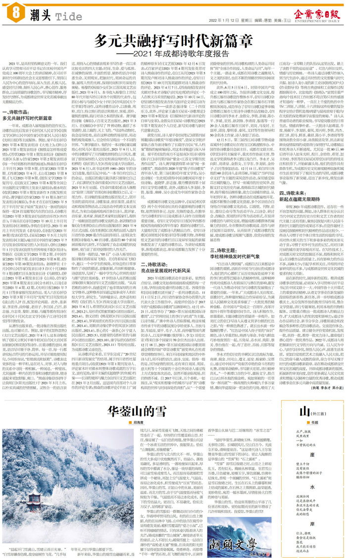 多元共融抒写时代新篇章 ——2021年成都诗歌年...