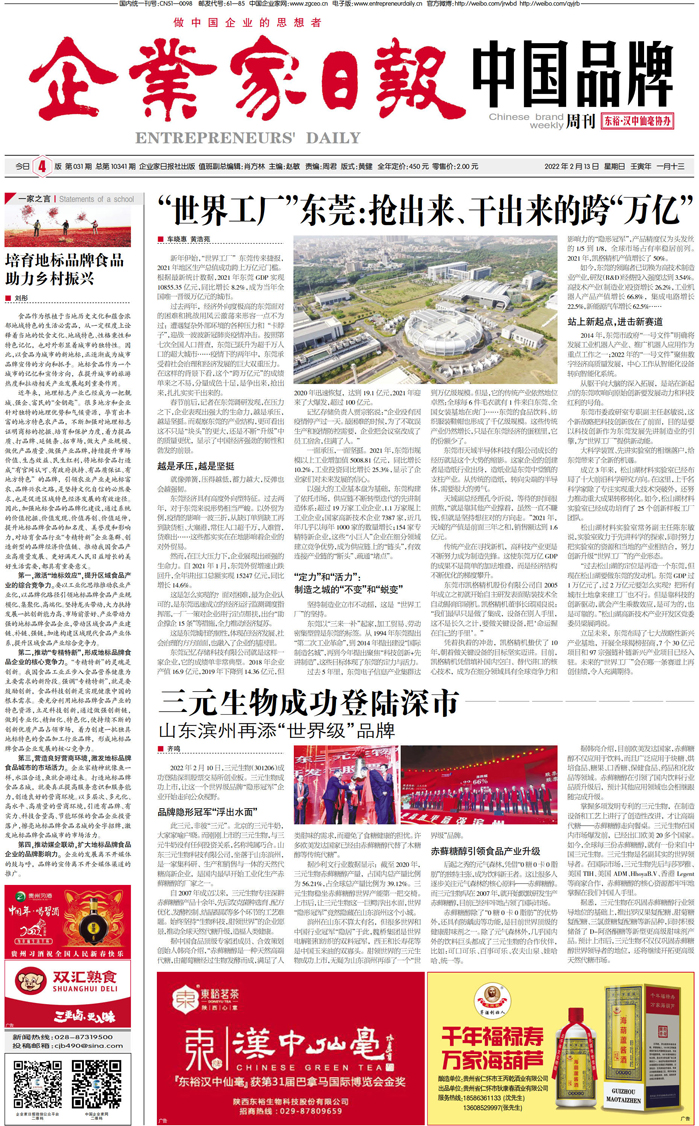 三元生物成功登陆深市 山东滨州再添“世界级”...