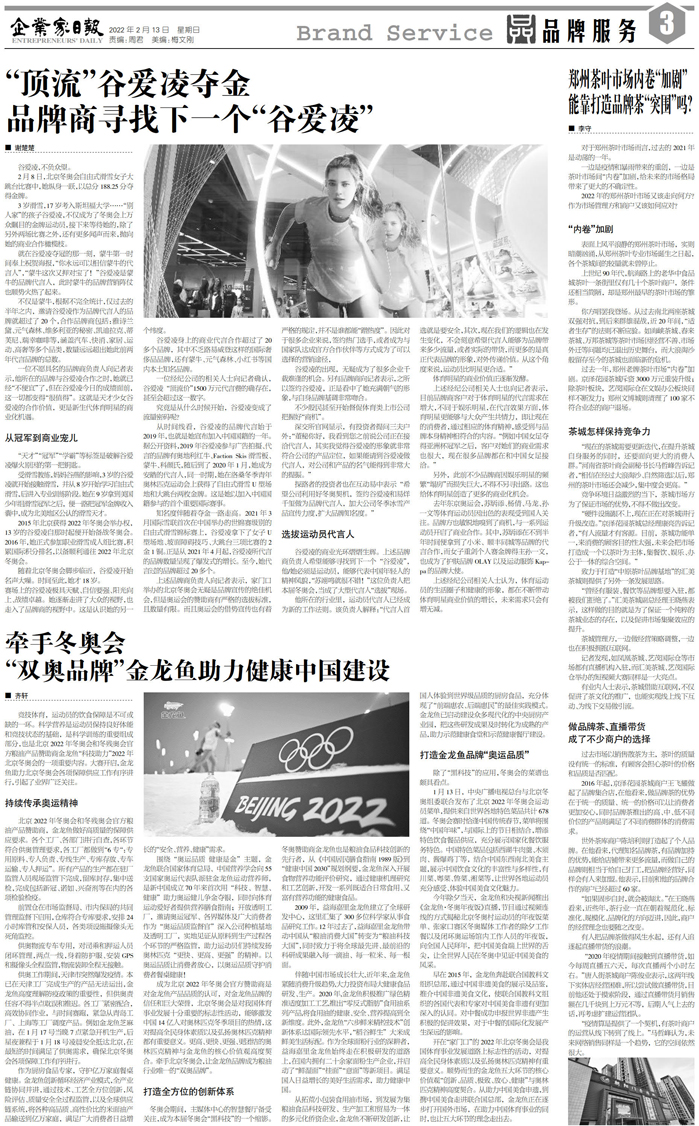 牵手冬奥会 “双奥品牌”金龙鱼助力健康中国建...