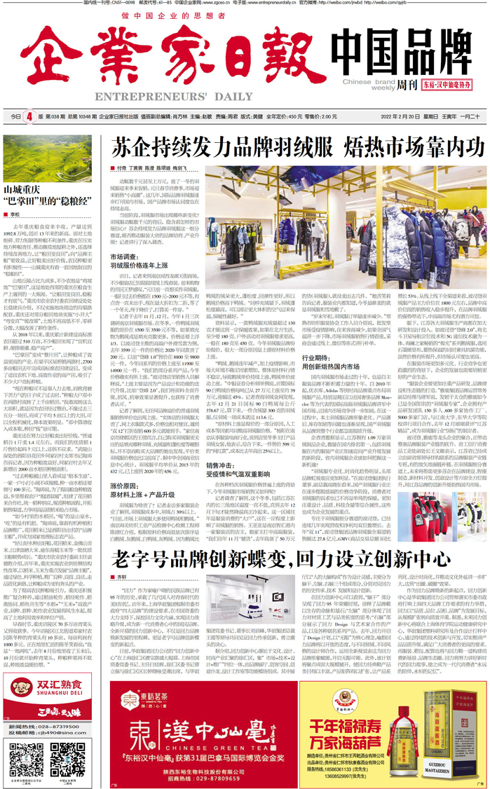 苏企持续发力品牌羽绒服 焐热市场靠内功...