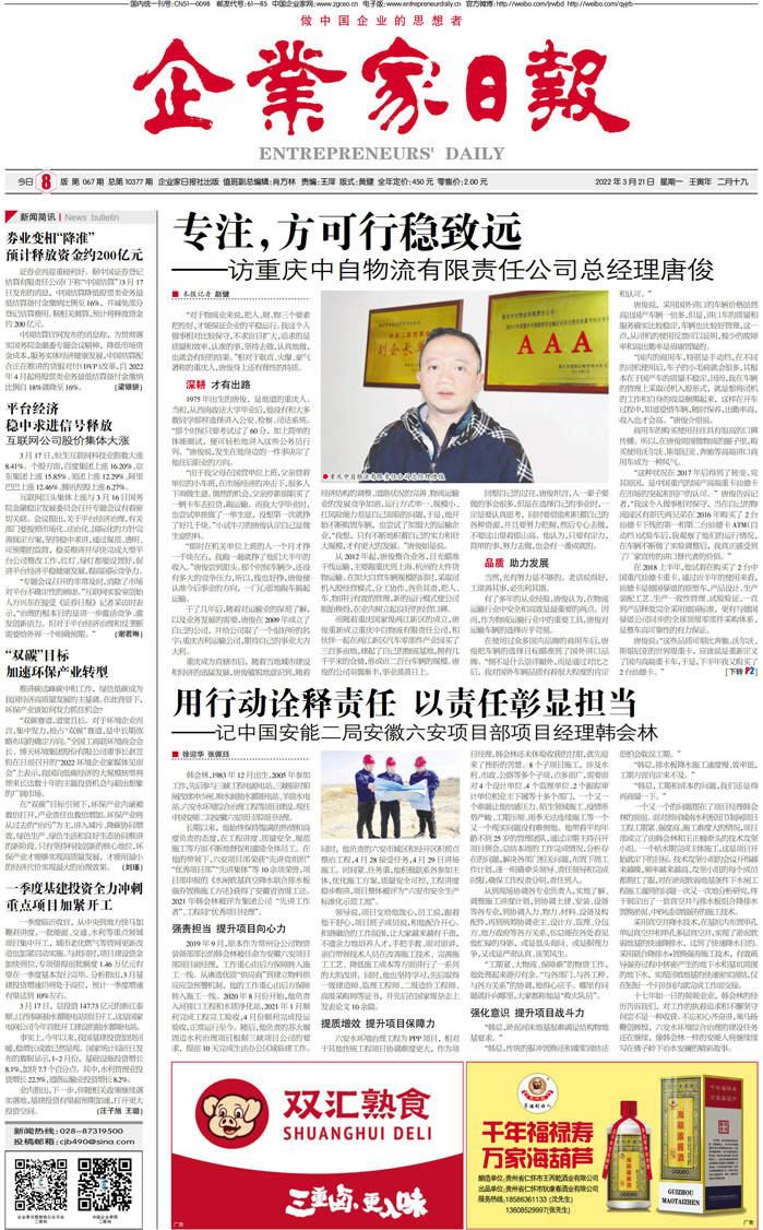 专注,方可行稳致远 ——访重庆中自物流有限责...