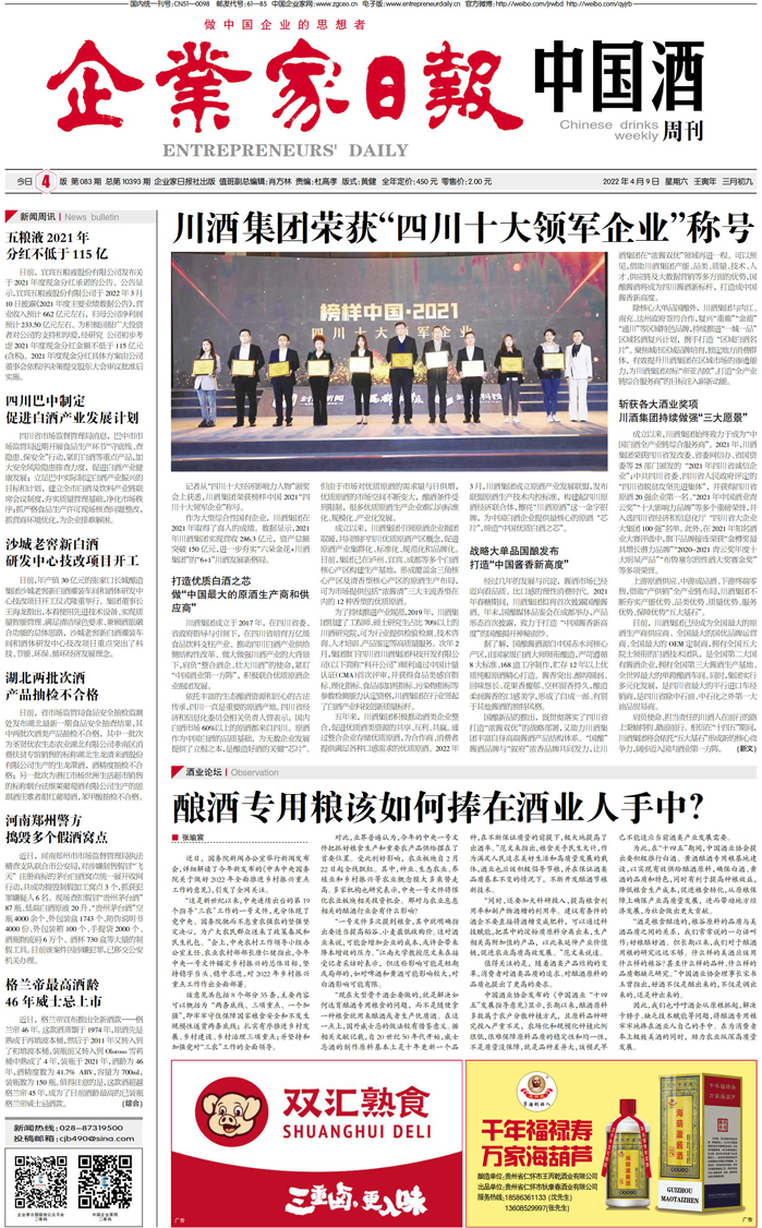 国内统一刊号:CN51—0098 中国•企业家日报