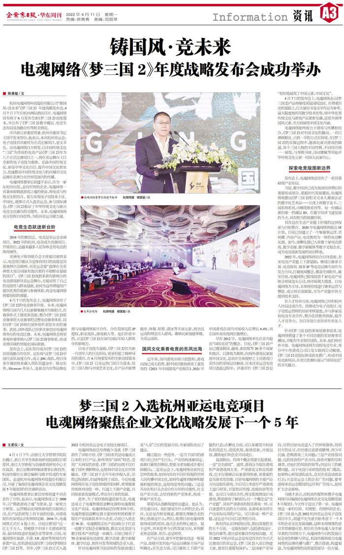 梦三国2入选杭州亚运电竞项目 电魂网络聚焦企业...
