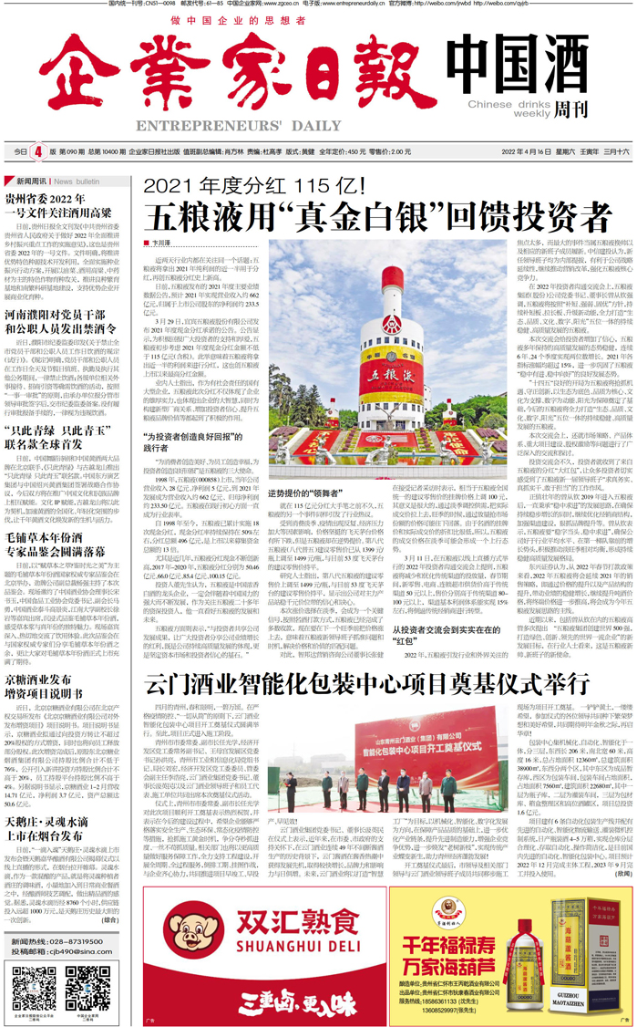 2021年度分红115亿! 五粮液用“真金白银”回馈...