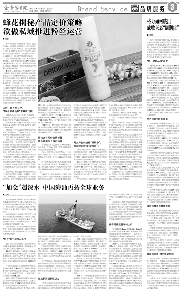 顾锦文告诉记者:“去年11月和今年5月这两次热搜事件都反映了粉丝朋友们对蜂花的关心和支持,我们也听取了很多粉丝朋友们的合理化建议,在不断丰富和改善我们的产品,满足更多粉丝朋友们的需求。接下来,我们会做私域,进一步推进粉丝运营,加强与消费者的沟通,将蜂花的企业精神、品牌理念传达给更多的消费者。”