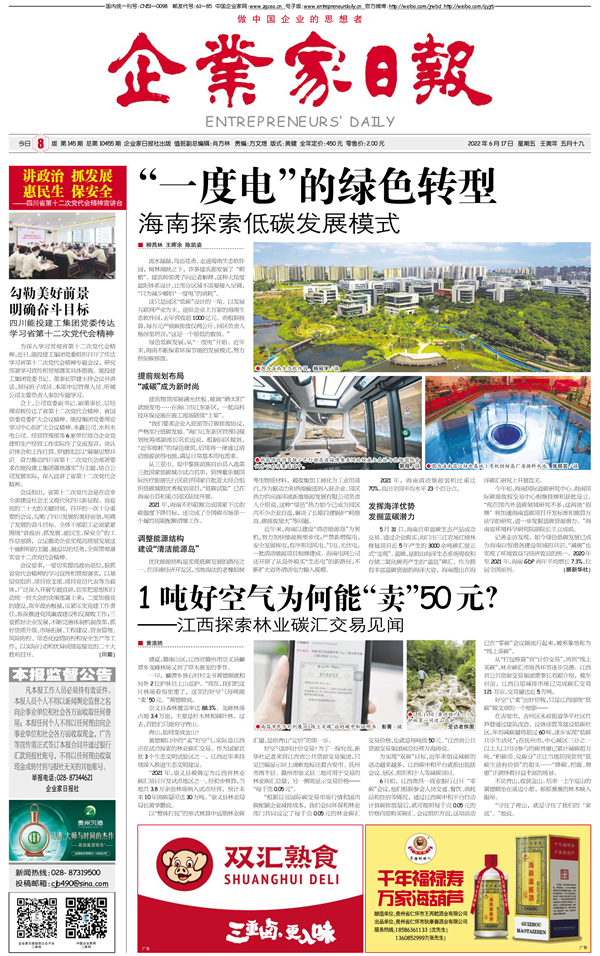 国内统一刊号:CN51—0098 中国•企业家日报