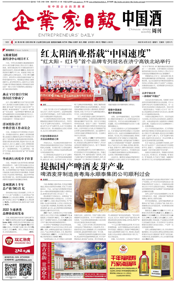 红太阳酒业搭载“中国速度”“红太阳-红1号”首...
