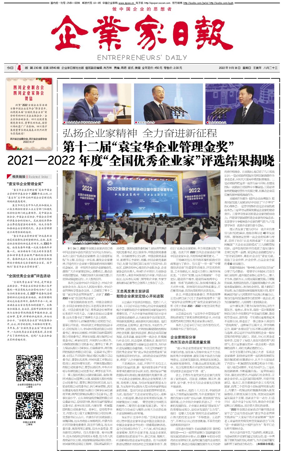 弘扬企业家精神 全力奋进新征程 第十二届“袁宝...