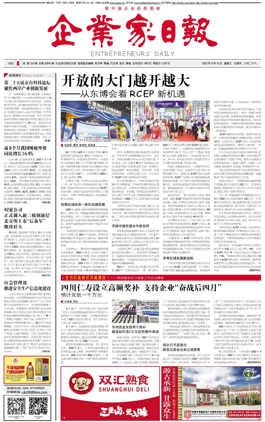 国内统一刊号:CN51—0098 中国•企业家日报