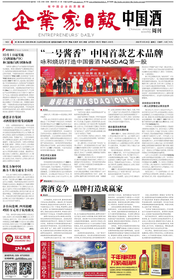 “一号酱香” 中国首款艺术品牌 咏和烧坊打造中...