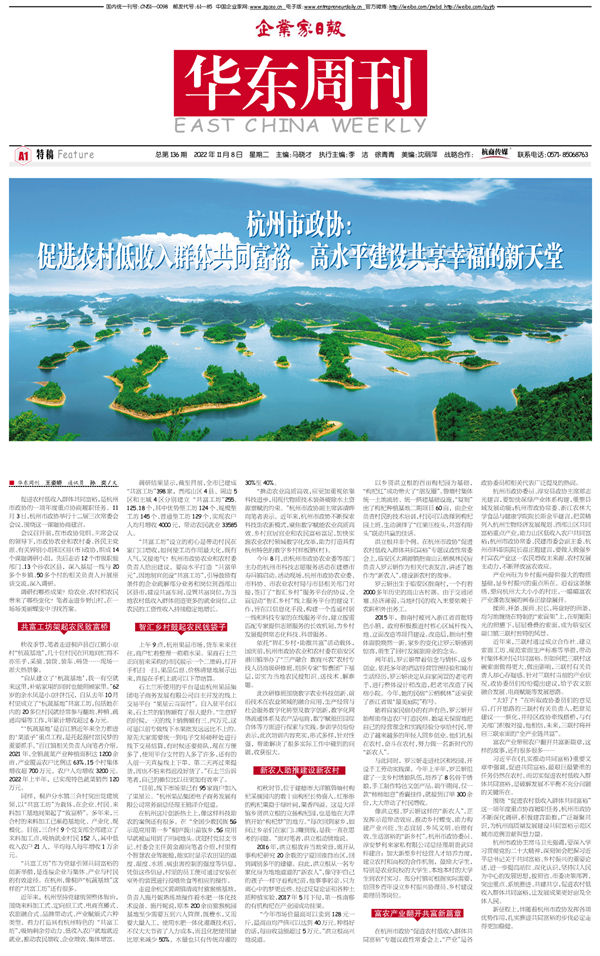 杭州市政协:促进农村低收入群体共同富裕 高水...