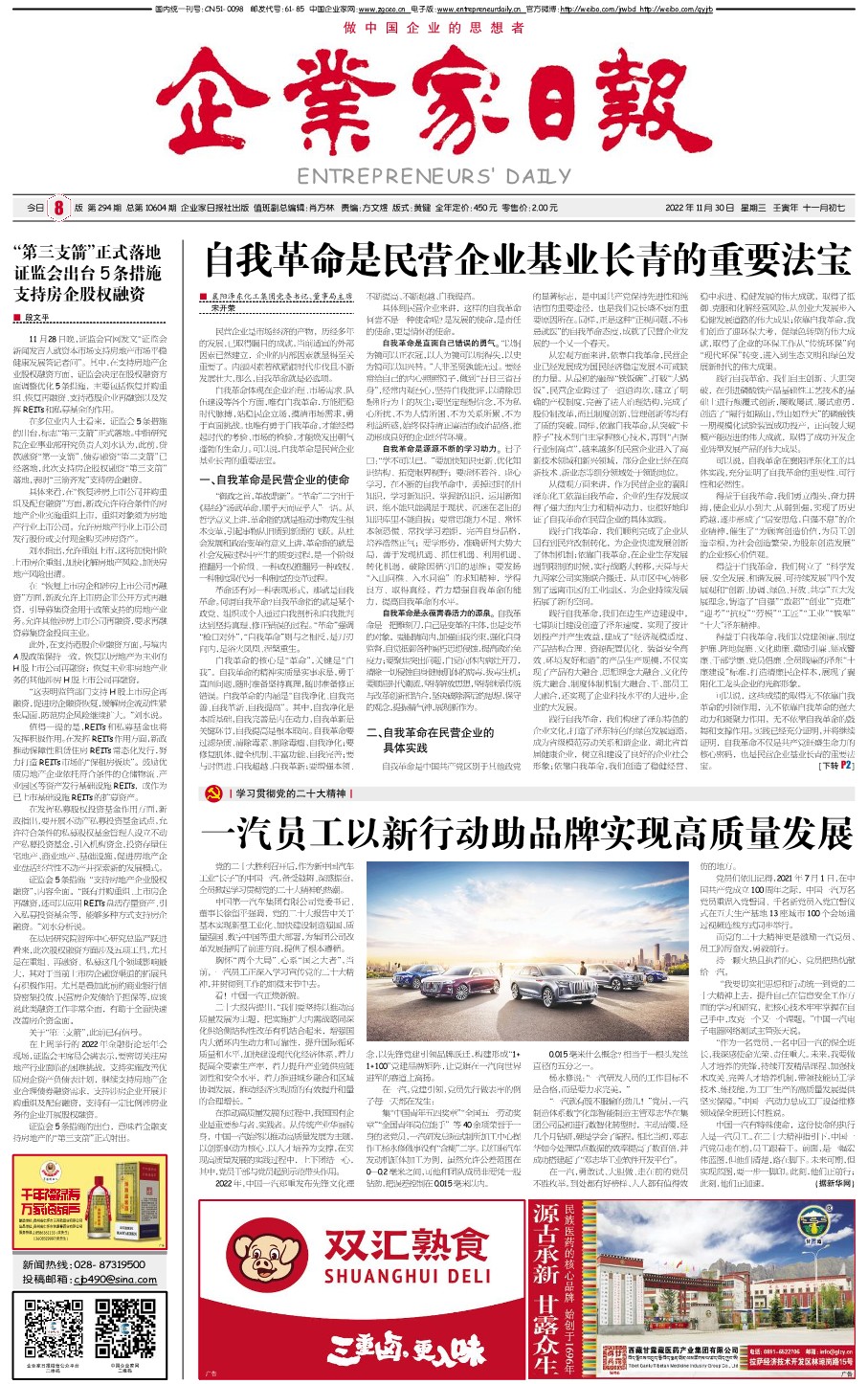 国内统一刊号:CN51—0098 中国•企业家日报