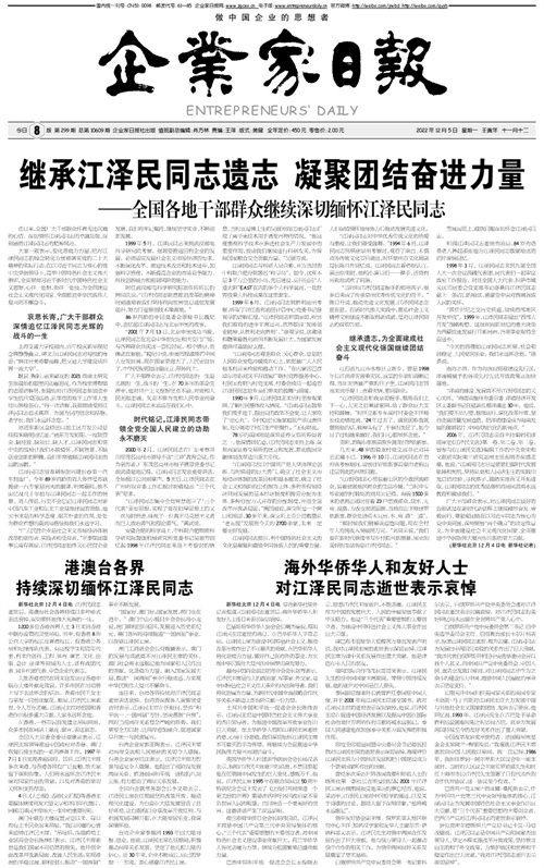 海外华侨华人和友好人士 对江泽民同志逝世表示...