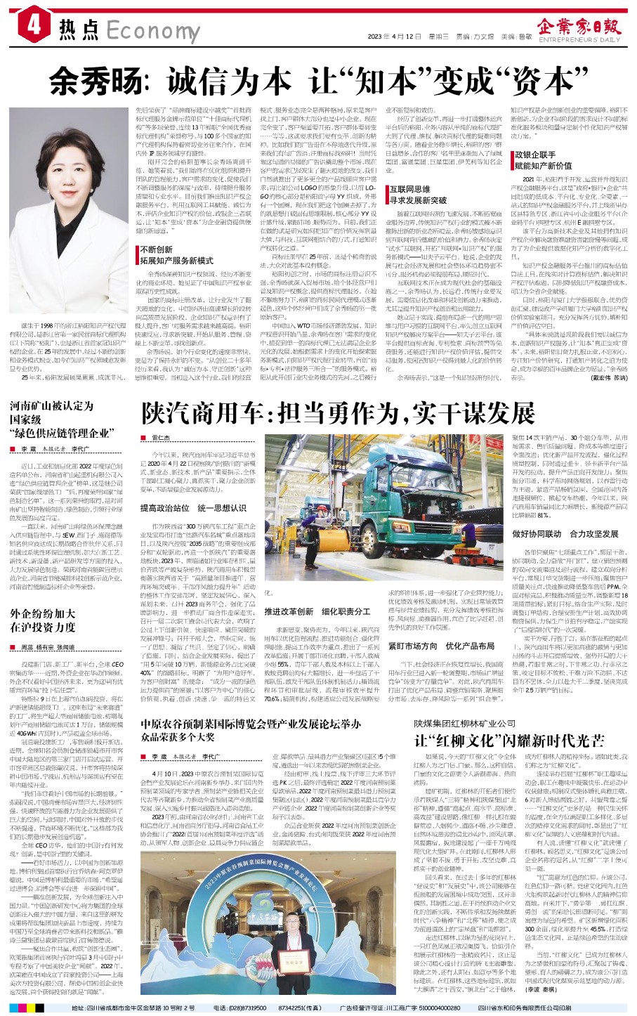 国内统一刊号:CN51—0098 中国•企业家日报