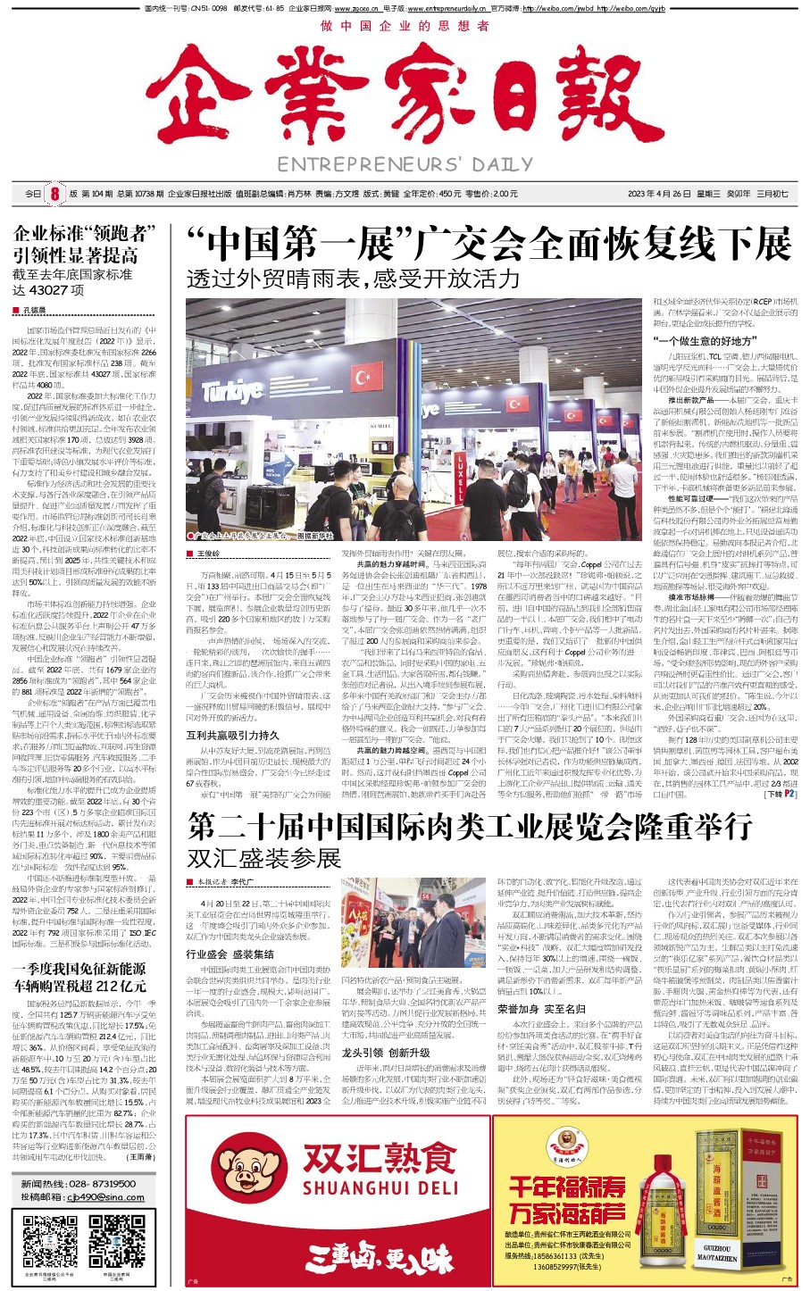 国内统一刊号:CN51—0098 中国•企业家日报
