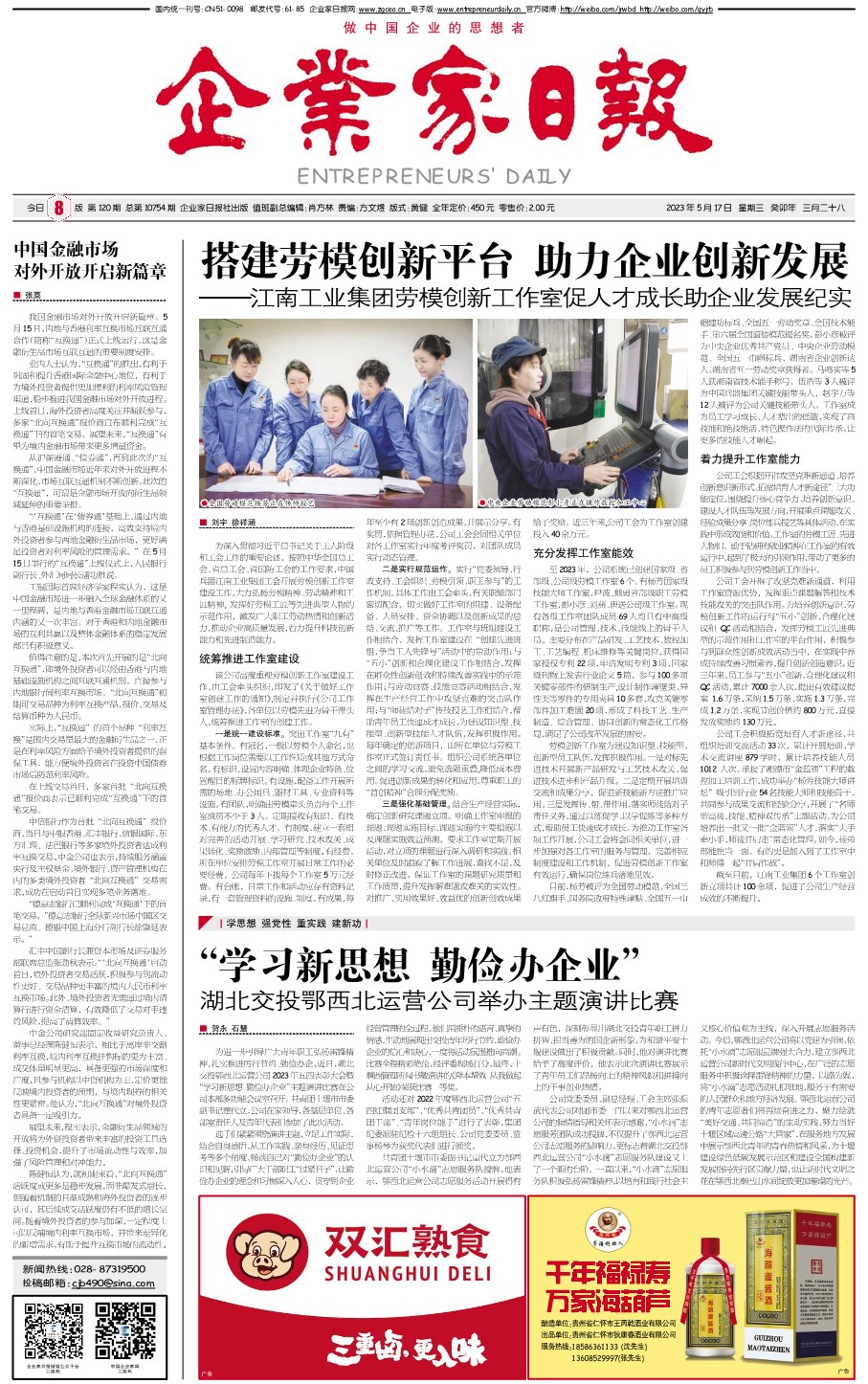 搭建劳模创新平台 助力企业创新发展 ——江南工...