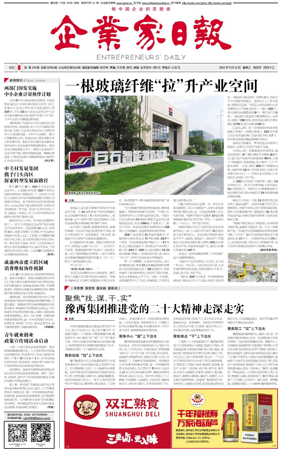国内统一刊号:CN51—0098 中国•企业家日报