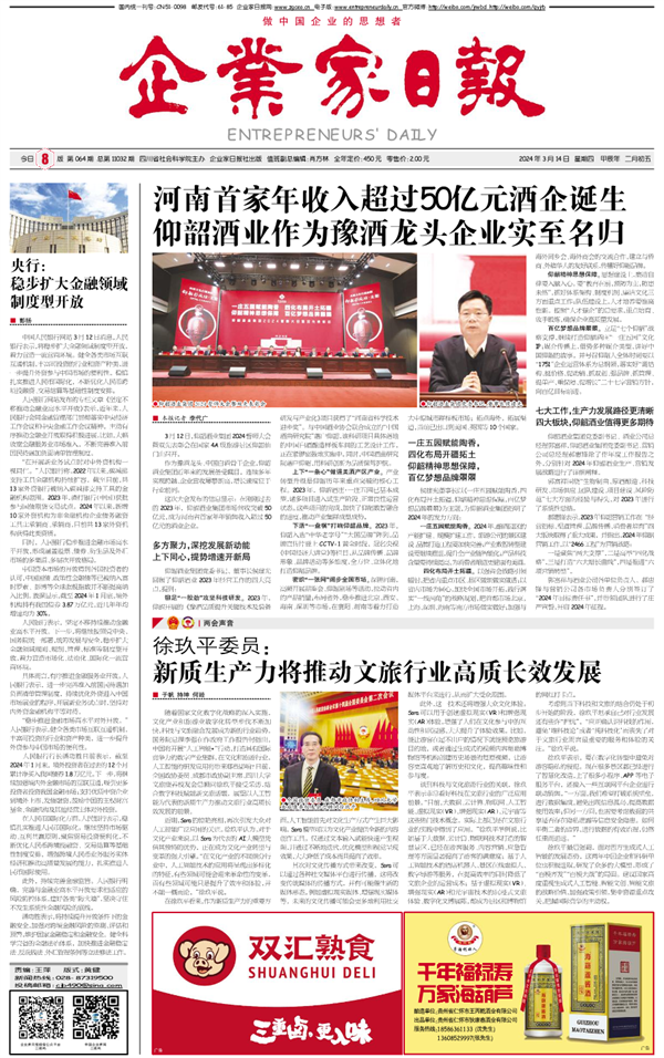 徐玖平委员: 新质生产力将推动文旅行业高质长...