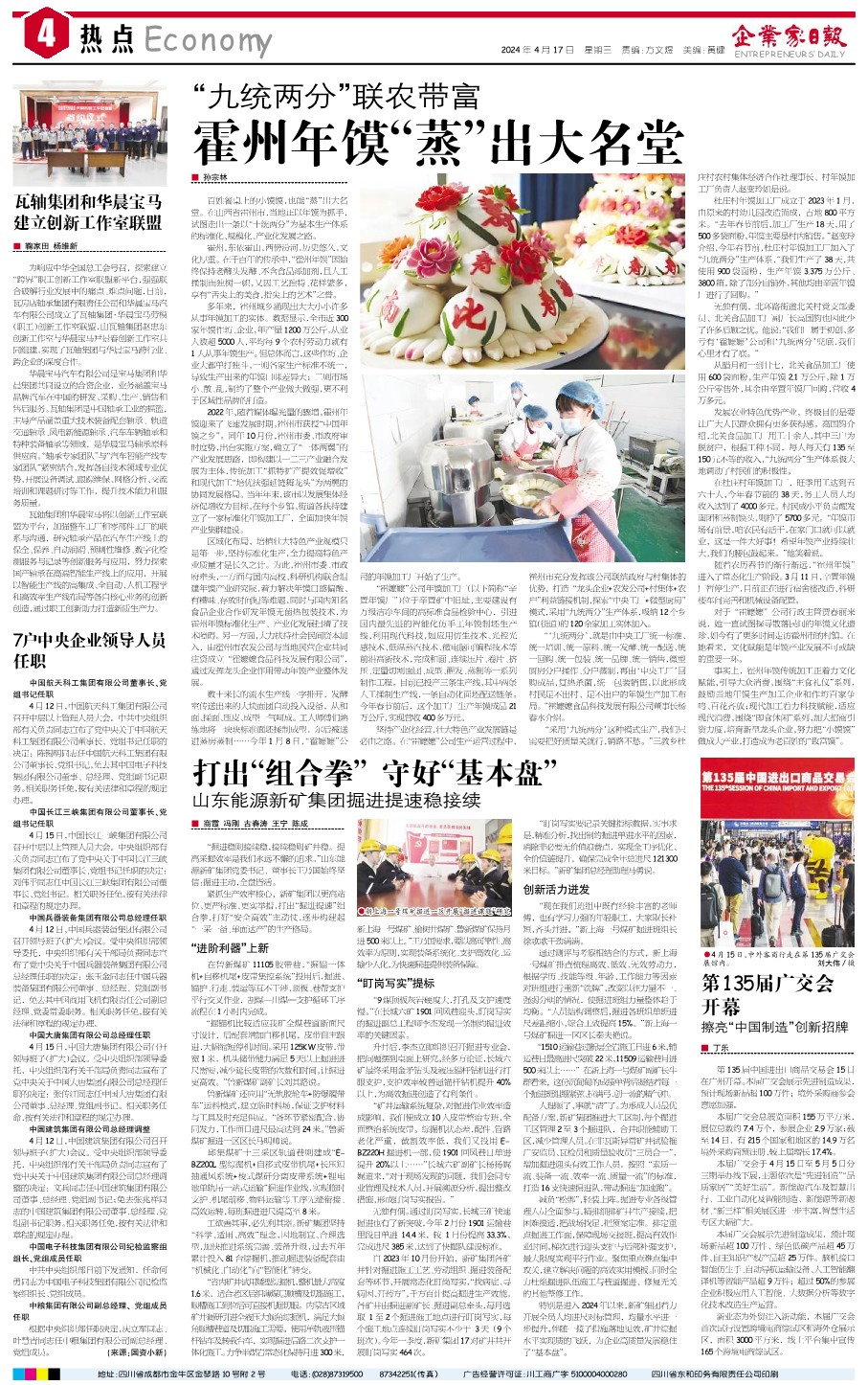 人理顺了,事就“清”了。为形成人员最优配备方案,新矿集团推进大工区制,每个掘进工区管理2至3个掘进队,合并职能辅助工区,减少管理人员。在非瓦斯异常矿井试验推广安监员、瓦检员和质量验收员“三员合一”,增加掘进迎头有效工作人员。按照“素质一流、装备一流、效率一流、质量一流”的标准,打造16支快速掘进队,带动掘进“加速跑”。