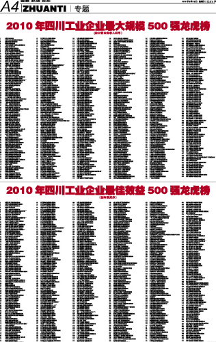 2010年四川工业企业最大规模500强龙虎榜...