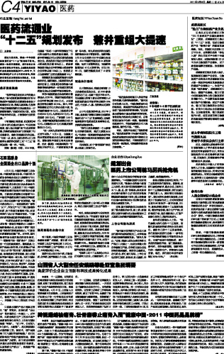 医药流通业“十二五”规划发布 兼并重组大提速...