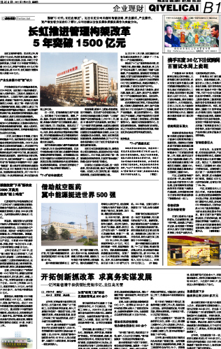 长虹推进管理构架改革5年突破1500亿元...