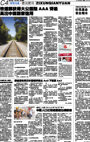 铁道部获得大公国际AAA评级 高出中国国家信用...